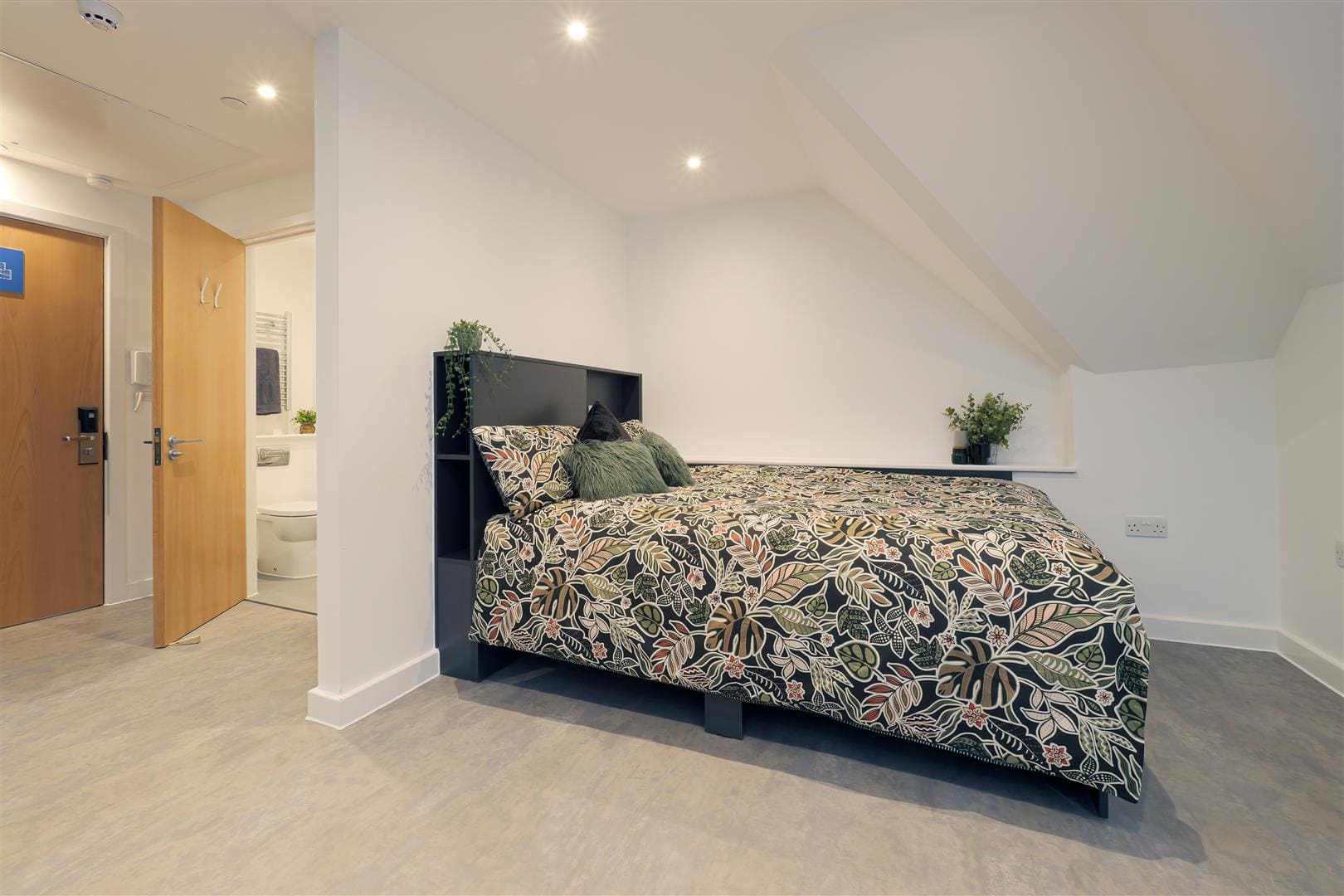 A stylish, one bed studio apartment, fully equipped with a modern kitchen, separate study space, double bed, plenty of storage and your own en-suite shower room.
