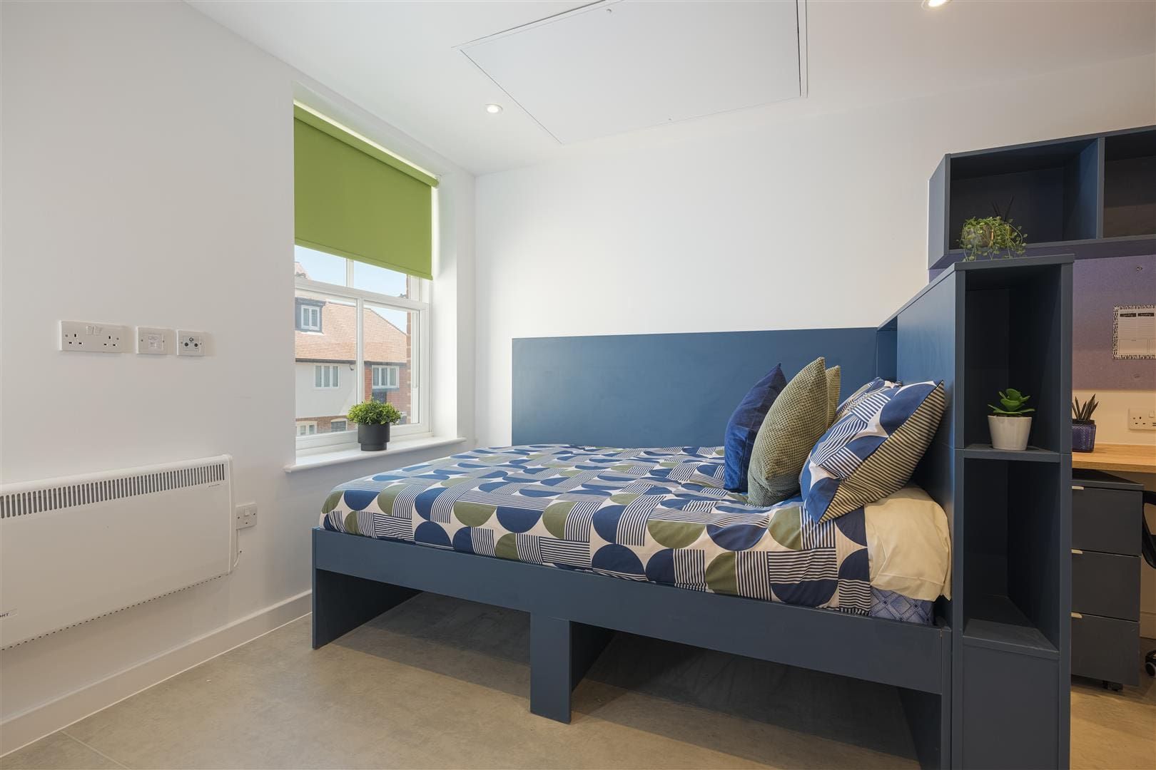 A stylish, one bed studio apartment, fully equipped with a modern kitchen, separate study space, double bed, plenty of storage and your own en-suite shower room.