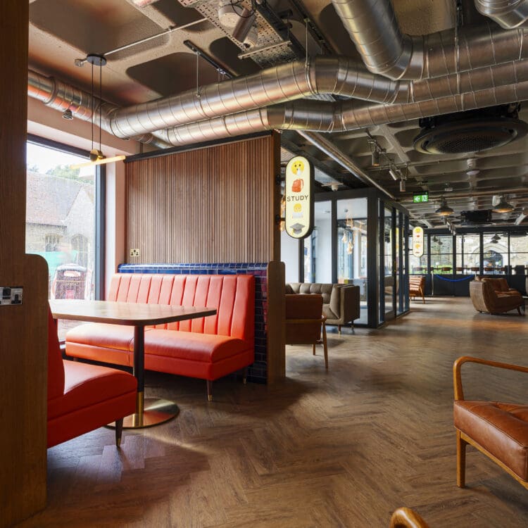 For when you don’t want to study alone in your apartment, our comfortable booth seating, set in a quiet area of the reception space – away form the busy coffee shop – can give you the connection to the community you may be missing when studying in your apartment but also the peace you need to concentrate.